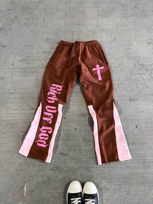 Rich Off God Flare Sweatpants - Chocolate Strawberry